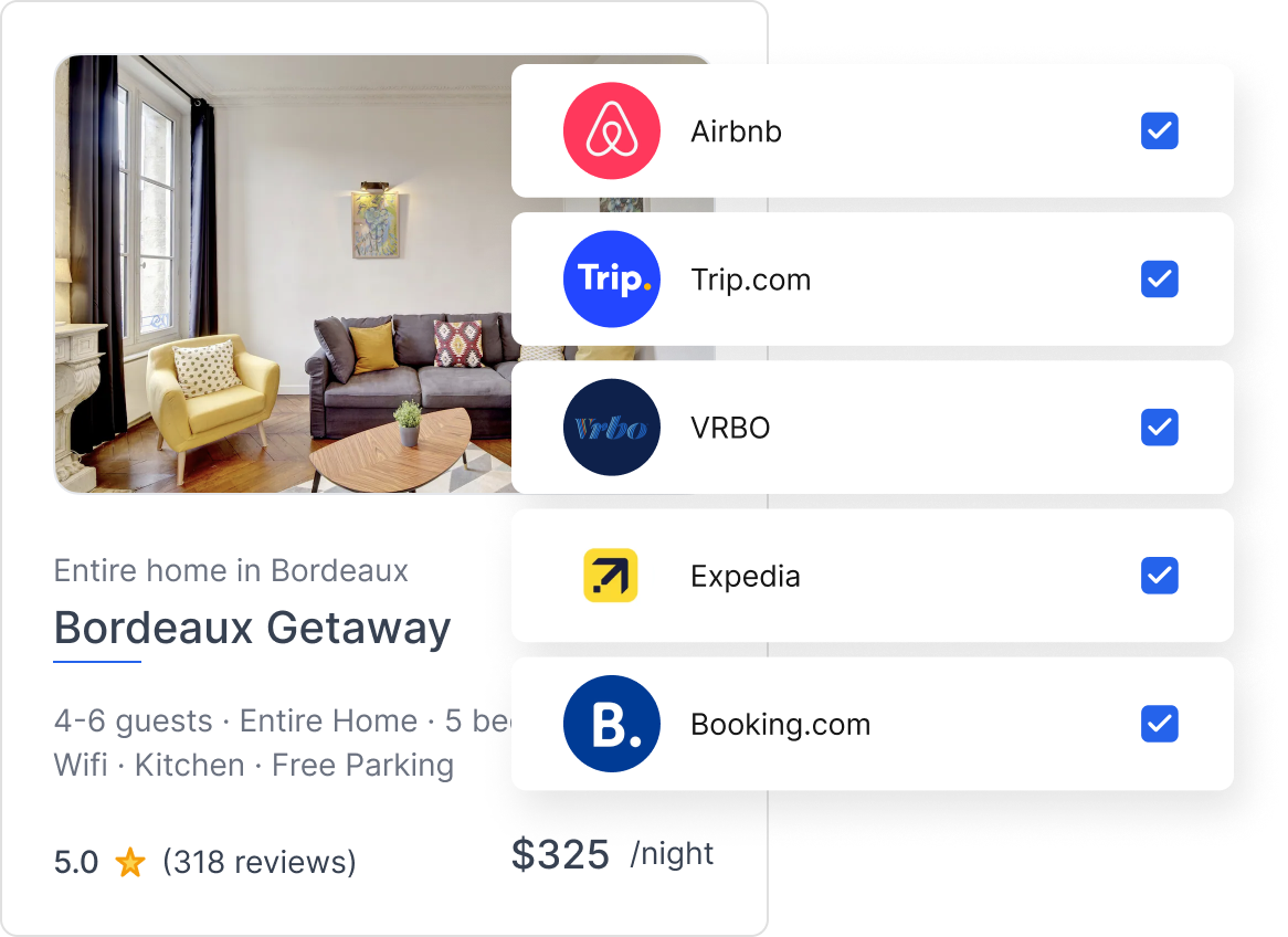 With one click, sync prices, calendars, and content across all the major booking platforms